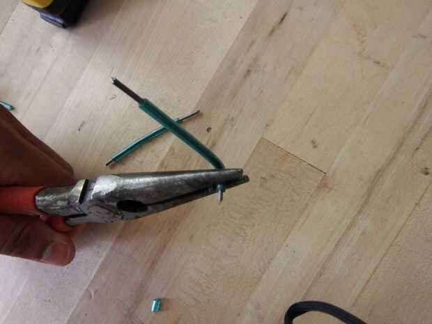 Dependiendo de la curva de 90 grados de anchura de corte de espuma desea poner 1.5"(o menos) en el otro extremo pelado. (También puede doblar el alambre en cualquier forma que desee para satisfacer sus necesidades)