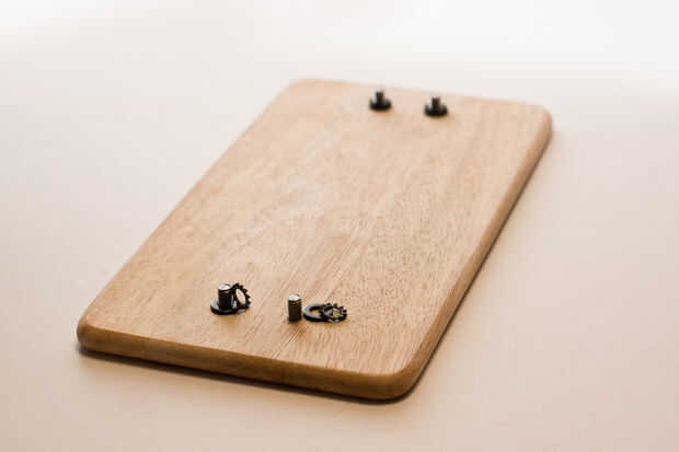 En la parte superior de la Junta tienes a unas arandelas en los tornillos del hilo de rosca. Estos hará que el espesor adecuado que deje que su pcb se deslice debajo de las reglas. Probablemente deberás cambiarlos o agregar o quitar algunas, porque la altura varía dependiendo también el grueso de la hoja de goma.