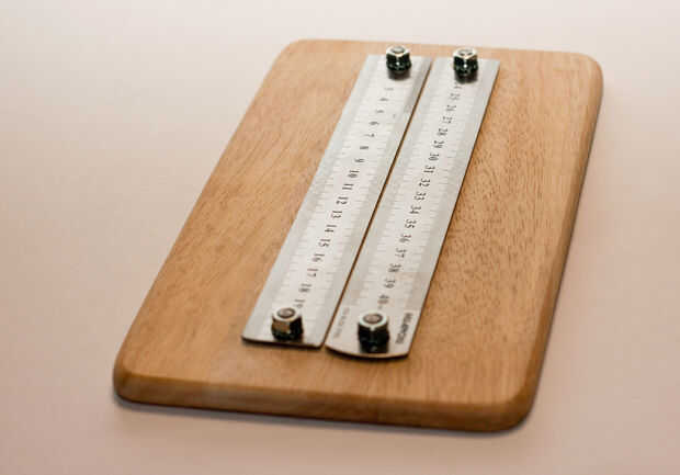 Aquí puedes ver las reglas en la posición, pero si no añades algo para que agarre entre madera (o reglas) y su pcb esto se resbale al que voy a intentar rayar con el cortador. Así que decidí utilizar una hoja de goma transparente agradable que me he comprado unos metros para proteger el fondo de mis cajones de herramientas. Antes de agregar el control de goma que los gobernantes estén perfectamente paralelos y raja es bastante estrecha. Si algo salió mal puede agrandar los agujeros de los gobernantes para un poco les cambiar.