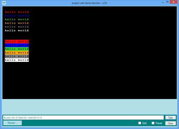 • Escribir texto en cualquier lugar de la pantalla en cualquiera de los 7 colores de primer plano y fondo.