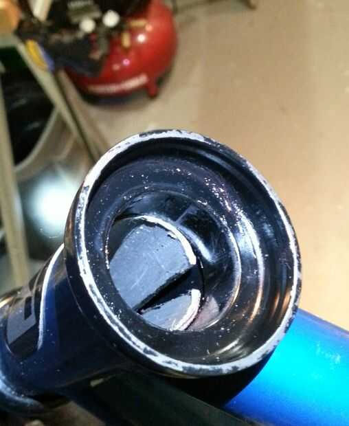 Para quitar las tazas de dirección, introduzca la herramienta en el extremo pequeño del tubo dirección primero. Abra la parte acampanada de la herramienta a través de la Copa del auricular hasta que encaje dentro de. Compruebe dentro del tubo para ver que la parte acampanada coge al final de la Copa conjunto cabeza.