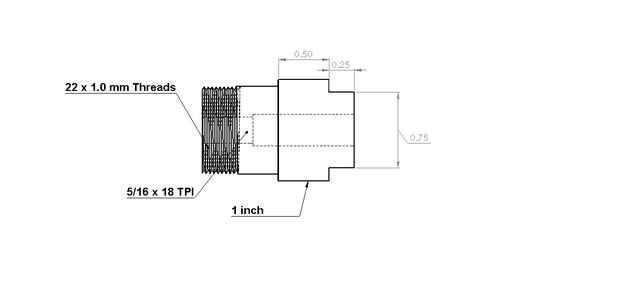 •Girar a.75 pulgadas a .8661 (22 mm)