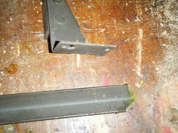 Corte el extremo de la estructura que tenía un 90 * soporte soldada a él con un alternativo Sierra y 3 en 1 aceite frescas cosas abajo y preservar la hoja.  Este soporte llega a ser reutilizados.
