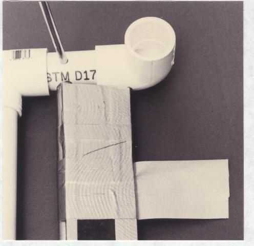 Utilice cinta adhesiva para fijar el 2 1/2" pieza plana para formar una lámina en la parte frontal de la unidad entre la barra delantera y el tubo de cobre de 1/2".