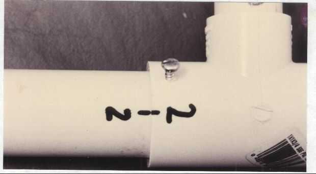 Instalar una sección de tubo de PVC de 1" en cada uno de los dos extremos abiertos de la Asamblea, como manijas. No pegar. Marcar las uniones y puntos de referencia para volver a armar. Taladro 1/16 tornillo agujeros abajo en el lado superior de las instalación/conexiones. Girar los tornillos hasta el final para evitar enganches.