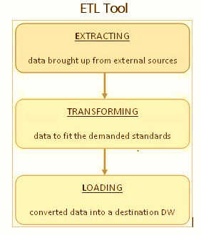 Un sistema ETL extrae datos desde sistemas de origen, refuerza la consistencia y calidad de los datos, ajusta los datos por lo separar fuente sistemas podrían utilizarse juntos, ofrece datos en un formato listo de presentación que puede ser utilizado por usuarios finales
