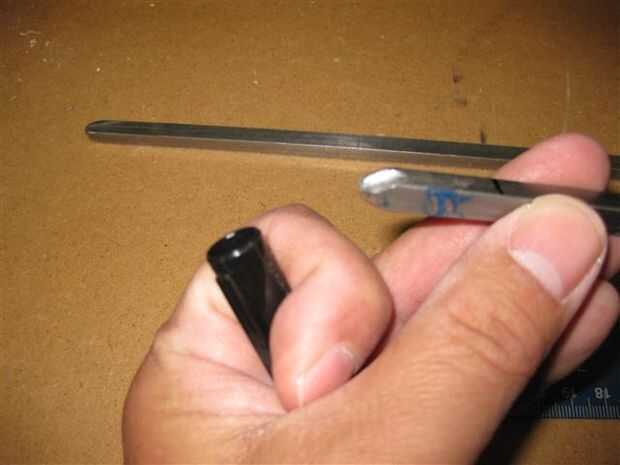 Yo suelo un patrón C en uno de los extremos (¼" por ¼") mediante el uso de un molino, luego rata cola archivo y pulido con lija. Repita para hierro #2.