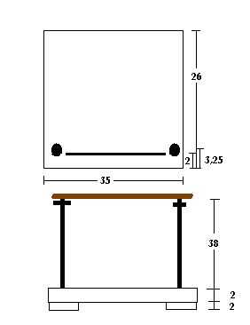 Esta son las dimensiones utiliza dependiendo de los materiales tienen y cuáles son cepillado para coser te tendrás que cambiarlos. Observe que el marco (línea marrón) es perpendicular y a la misma distancia de la ranura en la base de woob. Así que al coser el hilo soporte a 90 º desde la base.
