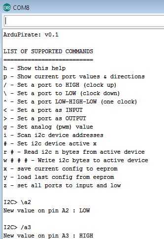 Este de línea de comandos permite el prototipado Arduino "Rápido" sin compilación. Lectura de valores analógicos, dis - habilitar puertos e incluso registro de I2C manipulaciones se realizan en segundos en lugar de minutos. Se muestra cómo establecer el tiempo de un reloj de tiempo real I2C "DS1207", así como la ejecución de algunas operaciones básicas.