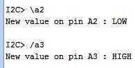 Configurar A2 en tierra y A3 a Vcc wie ejecutar: \a2/a3 entrar en < > y controlar el resultado con 'p'. Como no queremos repetir esto una y otra vez, ahorre con 'x'.