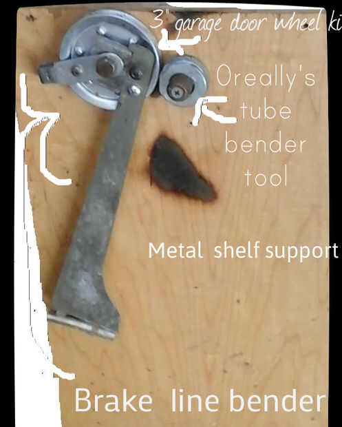 En el primero probé usando los tubos actual herramienta de autopartes de Reilly, que no cuesta demasiado, pero pronto encontró que la herramienta sólo doblen el tubo y terminar pérdida de líquido, así que decidí crear mi propia herramienta que funcionó 100% y cero que se enrosca y cero fugas. También era necesario el uso de un soplete para ablandar el metal en el estrés puntos antes de la flexión le verá el área quemada en la superficie de madera donde la antorcha quemó ligeramente la madera en dos áreas. Pero no te preocupes nunca tuvo lugar bastante tiempo en un solo punto para causar ninguna preocupación.