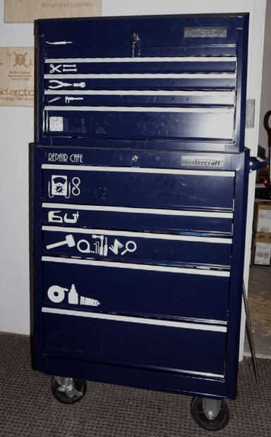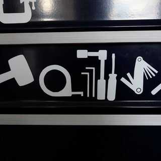 Utilizamos papel de transferencia para aplicar las calcomanías de vinilo adhesivo sobre el pecho de herramienta recién limpiado. Nos aseguramos de poner la herramienta correspondiente en forma de calcomanías en el cajón donde queríamos esa herramienta se encuentra. Esto ayuda a los miembros rápidamente poder saber dónde encontrar ese conjunto de pinzas que necesitan!