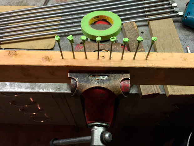 Si usted está preocupado acerca de las uñas, marcar con una cicatriz el interior de la pieza de trabajo, envolver la cabeza del clavo con un poco de cinta adhesiva. Estoy trabajando con la tubería hidráulica por lo que no quería correr ningún riesgo.