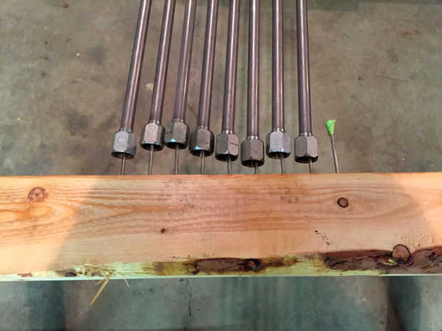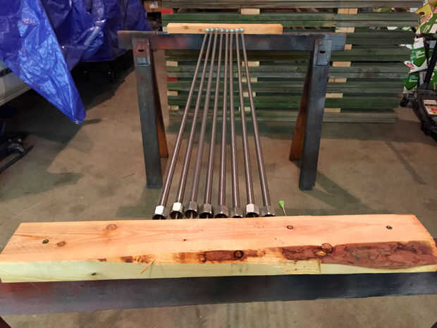 Coloque todos los tubos en su lugar sobre las uñas y asegúrese de que usted les puede girar libremente. Si no, los clavos están doblados fácilmente para proporcionar un poco de espacio libre necesario. Asegúrese de que los caballetes, y son tan cerca juntos no hay ninguna posibilidad de que el tubo caiga a un lado durante el proceso de rotación. En mi caso, tuve que hacer que todas las conexiones se extendieron tan lejos hacia fuera como van, para que proteja la superficie de sellado.