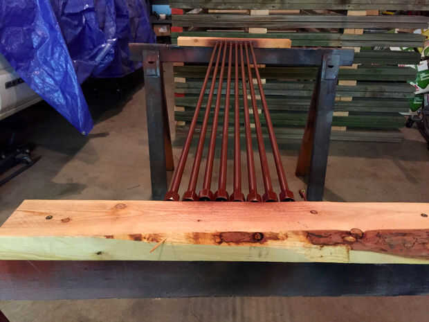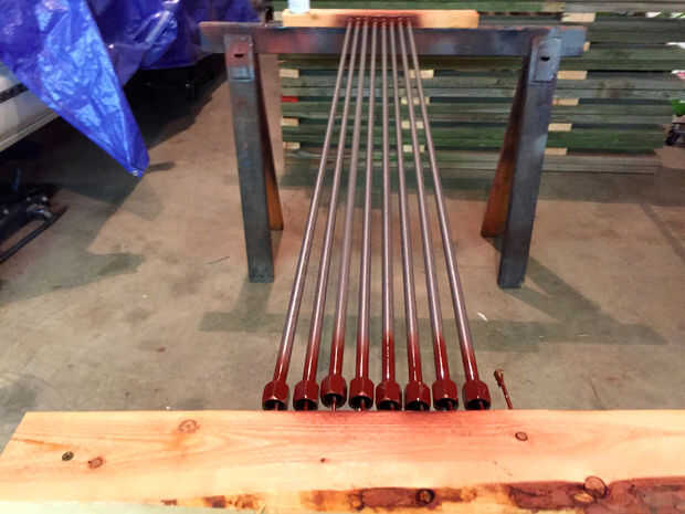 Trabajé desde los extremos en el centro. Lo cool es puede girar los tubos cuidadosamente y aplicar capas ligeras. Ser paciente y les tendrás todo cubierto uniformemente. En el último puede conseguir por debajo y en la parte superior, de cada lado para conseguir el lugar donde fueron girando los tubos sin tocarlo.