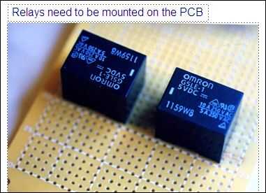 Ahora puede insertar los relés en los agujeros correctos y los relés se sentarán sobre el PCB.