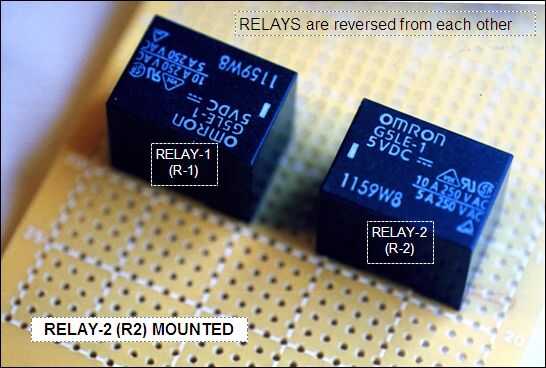 RELÉ-2 (R2) se invertirá de realmente-1 (R1) y PIN-1 (P1) de cada relé enfrentará entre sí.