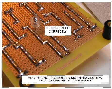 Coloque el tubo sobre el tornillo de montaje de 1/4". Esto permite cierta elasticidad en el PCB como colocar los cables en los bloques de TERMINAL (T).