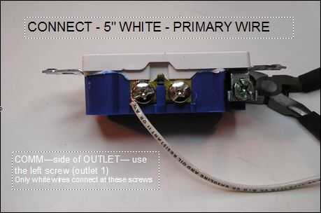 Hacer una forma de gancho en el extremo pelado. Mirando el lado COMM de la salida utilice el tornillo en el tornillo de un derecho (tornillo de enchufe 2) lo suficiente como para trabajar el alambre enganchado en la parte posterior del tornillo. Asegúrese de que la parte del gancho abierto de los extremos del cable en el lado derecho del tornillo.