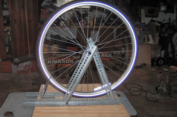 Recientemente publiqué un "Instructable" para un barato bricolaje bicicleta reparación soporte que se puede montar en tu terraza o cualquier estación de trabajo robusta. (Lo puedes encontrar aquí--> Pero después mirando para una hora o así, d