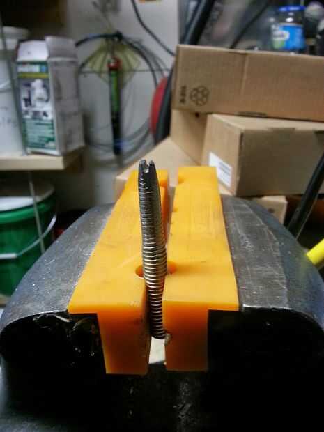 Con una lima triangular, corte una ranura en el extremo que se tendrá en cuenta el tamaño de alambre de calibre más grande.