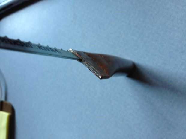 Con techinue de soldadura tradicional, sudor alguna soldadura en el empalme. Esto mantiene de trabajo abierta y afloje alrededor de la hoja. Mi primer intento no incluye limpieza interior de cobre, por lo que este paso no era posible. Probablemente no es totalmente necesario. Usted puede siempre apriétela hacia arriba en la prensa si funciona flojo.