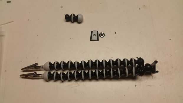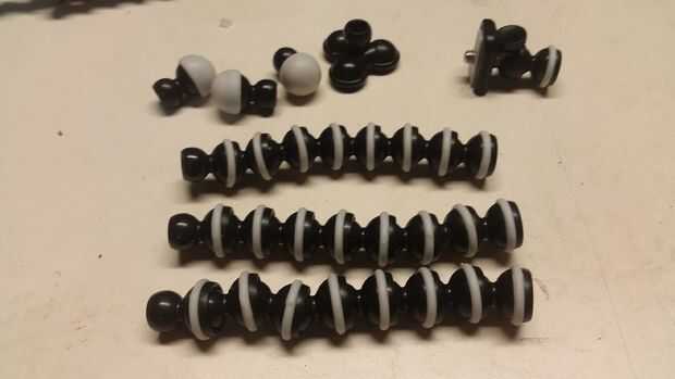 Cuadro 1. Para comenzar con, quite las tres patas de tres vías. Luego separar el "pie" de cada pierna. Finalmente una de las piernas separado en dos partes iguales de cuatro segmentos.