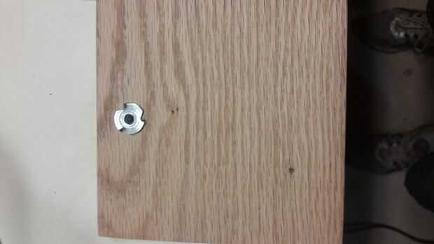 Cuadro 1. Decidir dónde quieres tus brazos, he seleccionado un punto 1" del borde y en el centro de lado a lado. Así que si gotean pegamento soldadura pintura etc.... A tierra en mi base no mi espacio de trabajo no en mi banco / mesa / donde estoy trabajando. Y me gustó mucho el look de los brazos que salen del grano más amplia con el grano más apretado en el espacio de trabajo que me recuerda a un árbol que crece en el borde de un río. Usted puede montar los brazos en el centro, en la esquina, offset, lo que adapte a tu estilo. Pero por lo menos 1" de los bordes y los nudos para el T-nut tiene espacio y no se agrieta o rompe su base. Taladre un orificio guía primero de arriba abajo y poner un trozo de madera debajo de la base para que te no los bordes ásperos o dañar la superficie de trabajo. Siga hasta con 1/4 de pulgada de la broca. El orificio piloto asegura que su orificio es donde usted lo desee. Si empiezas con la 1/4 de pulgada más probable es que se camine antes de que comience realmente perforar la base. Si no usas un x 10 T-tuerca Asegúrese de comprobar el tamaño del orificio necesario. Aquí quiere que sea ligeramente más grande que el centro de la tuerca de T
