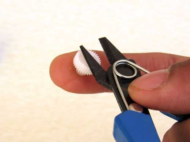 1. Abra el Servo con sus cuatro tornillos y cortar el Pat bloqueo de la marcha en la salida como se muestra en la imagen.