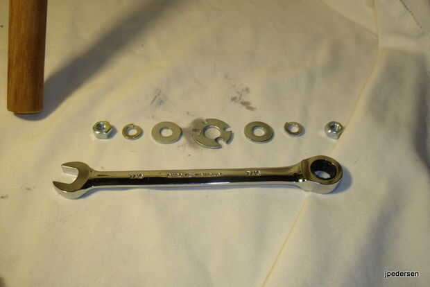Usted encontrará que por el agujero de diámetro más grande en la lavadora de raspador que se moverá hacia un lado mientras se aprieta, si lo hace un poco aflojar de las tuercas y descansar la parte del raspador sobre una superficie plana y vuelva a apretar.