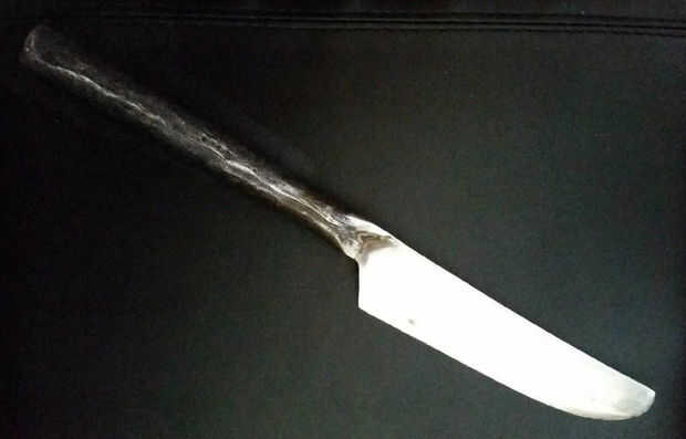 En la tienda local de segunda mano, encontré un set de 8 cuchillos de mesa por $2.00. Que no estaba buscando cuchillos de mesa, como yo todo listo en ese departamento, pero me di cuenta de que se trataba de sólido acero, bien hecho, y tenían manijas huecas. En sólo 25 centavos de dólar cada uno, arrebató los para arriba. El marcado sólo en ellos es "Tailandia", por lo que no puedo decirte que les hizo. He ya visto otra vez, en tiendas de segunda mano, por lo que no pueden ser que raro.