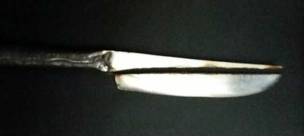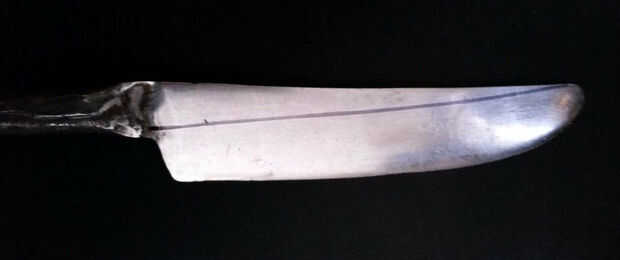 Usted notará que estos cuchillos de mesa, como cuchillos de mesa del mundo sobre, tienen cuchillas asimétricas. Esto no es algo malo cuando se corta dos veces cocido patata o mantequilla de separarse. No es necesariamente una mala cosa cuando ante una situación de supervivencia, pero en este caso, vamos a (A) reducir el peso y (B) crear una forma simétrica.