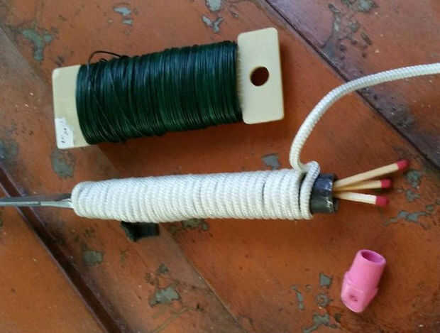 Ahora que su herramienta básica, es tiempo de personalizar! Sólo estás limitado por tu imaginación aquí. ¿Por ejemplo, allí es no perder el casquillo del mango hasta que necesite empujar un palo ahí, correcto? Pongo algunos partidos, lineas de pesca, las agujas y peces ganchos en la mía y luego sellaron los extremos con gomas de borrar. Voy a sustituir las gomas de borrar con tapones de corcho, sin embargo, debido a corchos pueden doblar como "bobbers" de pesca. Estoy seguro que hay algún uso con gomas de borrar en un escenario post apocalíptico, pero no puedo pensar en en el momento. Yo también envuelto mis mangos en diversos materiales que podrían ser de utilidad. En la imagen, puede ver un mango envuelto en cable. Tengo otros envueltos en alambre del lazo, cinta, cable para, hilo dental y tendones artificiales.