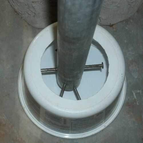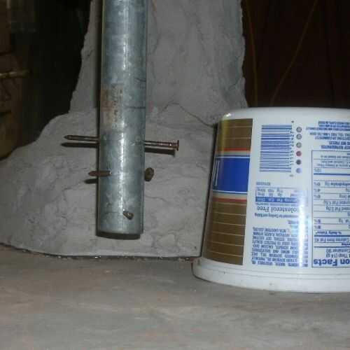 Como molde para la cabeza de cemento, usé una tina de plástico de margarina. Esto va a ser una seguridad bastante ligero. Si necesitas algo más grande y más pesado puede que desee utilizar una tubería más pesada que estoy utilizando aquí y un envase más grande como un molde.