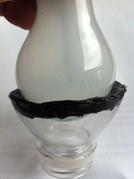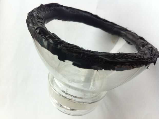 Corte el extremo de la botella, poner silicona en la circunferencia.