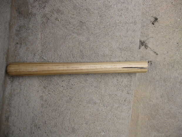 Como ya tenía un mango de madera largo que no tenía necesidad de ir formando y creando un nuevo tirador para lo de la casa. Simplemente recortado la manija en el suelo que anteriormente fue unido a él y que añade un atajo hasta el centro de la hoja en la cuña.