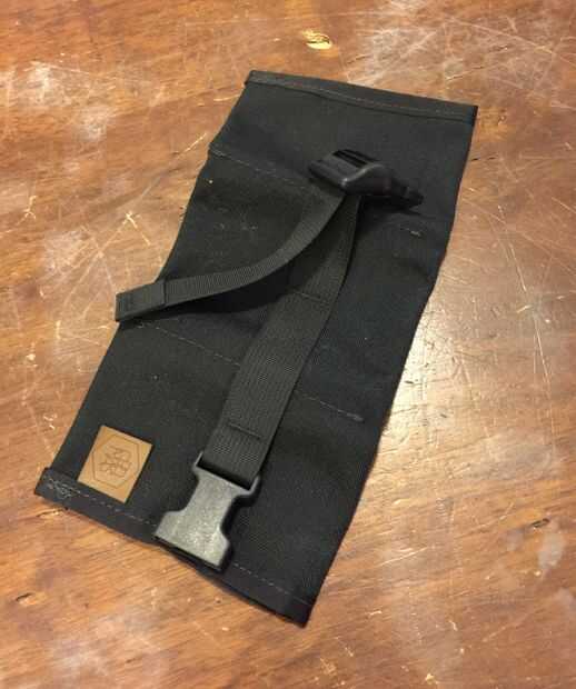 tengo una buena herramienta roll que he recibido como "entrada" en una feria. Hace su trabajo bien sin sobrecargarlo. Sólo tiene 3 bolsillos, que me gusta, para un tubo, un inflador y una herramienta multiusos. Para la mayoría de caballo de la carretera generalmente quieren llevar más. Mi queja menor uno con este rollo de la herramienta es que realmente no me gusta la gran hebilla plástica que sirve como un método de cierre, es innecesario, feo y se ve realmente en casa en motos más modernas (que probablemente funcionalmente y estéticamente servidos mejor por una manada de cuña) Este es mi intento de hacer mi propia de componentes naturales que se verán mejores en algunas de mis motos más clásicas.