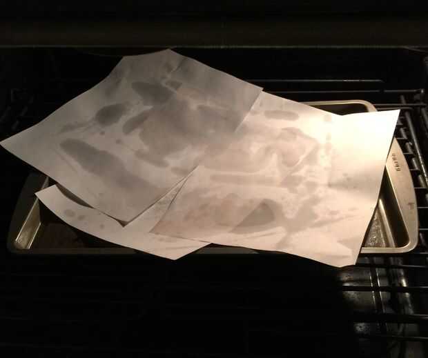 Cuando la tela es un color uniforme y la consistencia retirar del horno. Mientras todavía caliente y flexible la materia algún papel en las bolsas para evitar encerar sólidos y el papel para secar.
