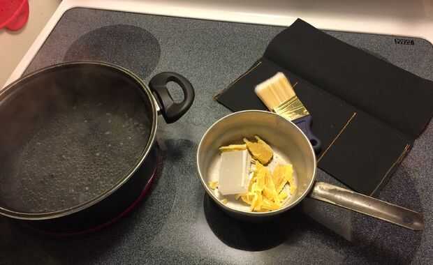 Una vez que la tela está cubierta y la cera comienza a secarse tomará una apariencia pastosa blanquecina.