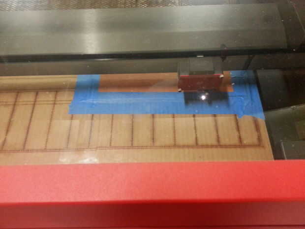 Te sugiero usar algo para proteger el cuero (masking o cinta) para ayudar a minimizar la quema. Cinta azul el cuero para cartón de montaje mantiene más plana que la cinta azul a la cama láser de nido de abeja.