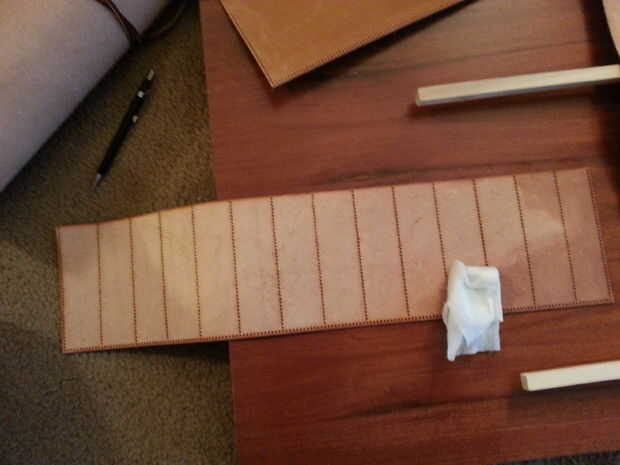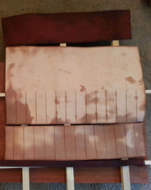 Entonces para deshacerse del carbón de leña olor que frotó el cuero con paños de cuero remojados en agua. A continuación dejo el cuero seco en un estante para la circulación de aire por todos lados. Las toallitas cuero he usado eran viejos y secos hacia fuera, así que no estoy seguro si hicieron algo o si agua se deshizo de olor.