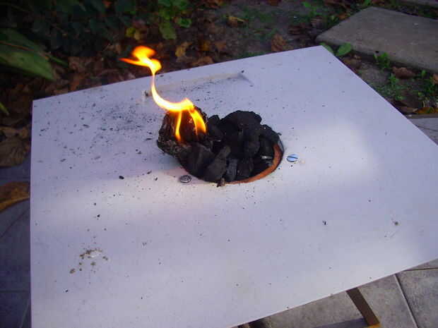 No hay problema. En un momento parecía haber dado vuelta el trozo de papel, pero después de unos segundos de dar aire moderado, fue escuchado el inconfundible silbido de incipiente fuego.