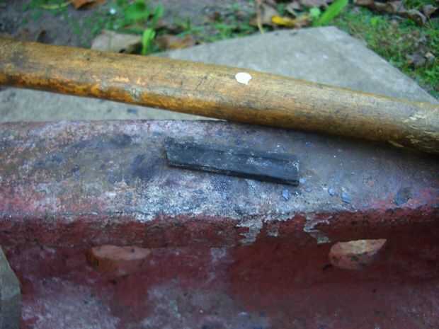 Al alcanzar las piezas el color rojo, las saqué y las enderecé sobre mi yunque con el martillo chico. Tuve hacer esta tarea en dos o tres etapas, dado por mi impericia las piezas se enfriaban antes de tener tiempo de enderezarlas.