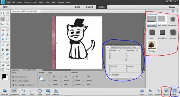 Favoritos es auto explicativo, que le da una ficha de todos los efectos, gráficos, estilos, etc. que utilizan la mayoría (Pluma roja)