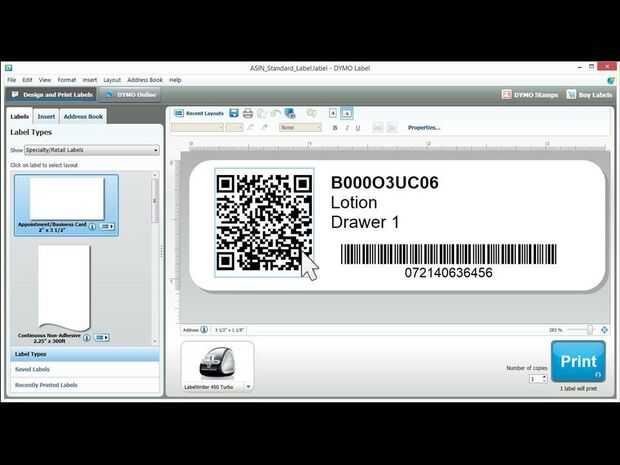 Paso 7: Haga clic en el código QR en la plantilla de etiqueta Dymo.