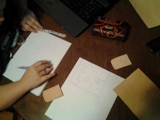 Comience con su imagen. el cliente me dio un diseño por su novio a utilizar. no voy demasiado en detalle para su primera. y verás por qué... jajaja. tuve mi esposa dibujarlo hacia fuera para mí, como ella es mejor en diseño que soy. Utilicé las dimensiones de la pieza de cuero que estaba trabajando con (10 oz. verdura curtida) la onza es el espesor, (me gusta un poco más grueso de diseño sumideros más profundos.) hay 2 formas de tratar el cuero. curtido vegetal y curtido de cromo. Si usted quiere la herramienta, utilice cuero de verduras curtidas.