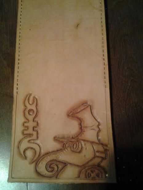 el primer paso consiste en mojar el cuero. allí es un cierto punto es óptimo para herramientas. un "punto dulce" si se quiere. el cuero debe ser flexible y ligeramente permanecen en cualquier posición que lo doble. simple prueba y error te dirá cuando estás allí.