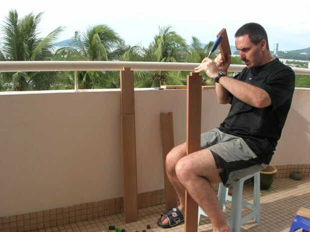 Para la mesa de lego, elegí las juntas de cola de Milano. Como se puede ver en las fotos, mi falta de un banco de trabajo requería algunos acuerdos provisorios de sujeción, incluyendo mi hueso pinza con trinquete acción fémur doble en la segunda foto.