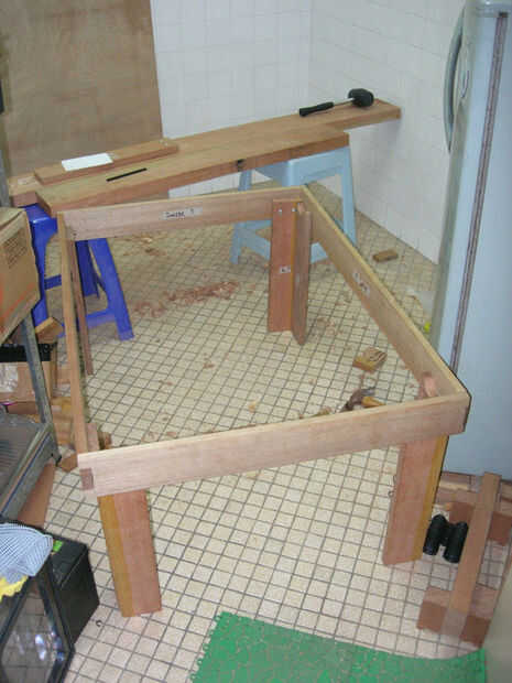Esta parte es bastante fácil. Pegar los tableros pierna juntos en pares. Pegue la cara de una placa al lado del otro para que adoptar una forma L cuando visto desde arriba. Ver la imagen. Este es un tipo de empalme, pero porque están pegando las caras de los tableros, es una articulación muy fuerte y no necesita ningún refuerzo. Asegúrese de que las partes inferiores de las piernas estén al ras con los demás cuando les pegar. Como está pegado el conjuntos de las patas sobre el marco, asegúrese de que la altura de las piernas es lo mismo que la parte superior de la placa de soporte medio (si se usa uno).