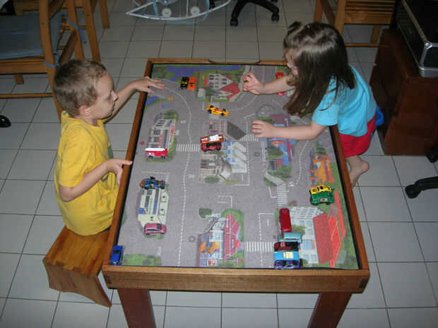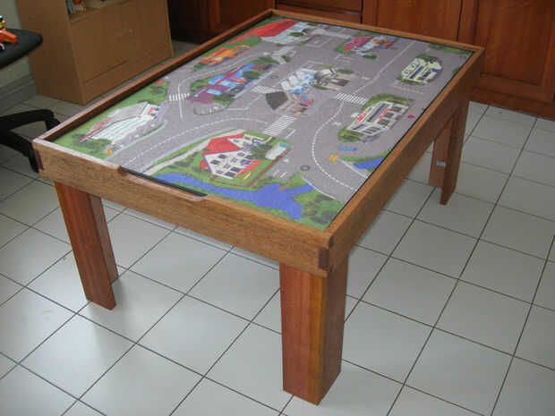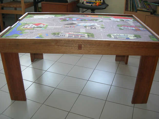 Un componente adicional que puede considerar es pintar un tablero tablero de ajedrez y backgammon (etc.) en la parte superior de la madera contrachapada. Incluso puede instalar una pequeña caja debajo de la parte superior de la mesa para sostener las piezas. A continuación tienes una tabla de juegos. También hemos utilizado esto para rompecabezas; cuando no está trabajando en el rompecabezas, colocar la estera del coche en la parte superior y nada obtiene en mal estado o perdida! También puede voltear la estera del coche hacia abajo (la parte inferior es de caucho) y que los niños comen en la mesa (cuidado las bebidas). ¿Qué puede hacer esta tabla? : D